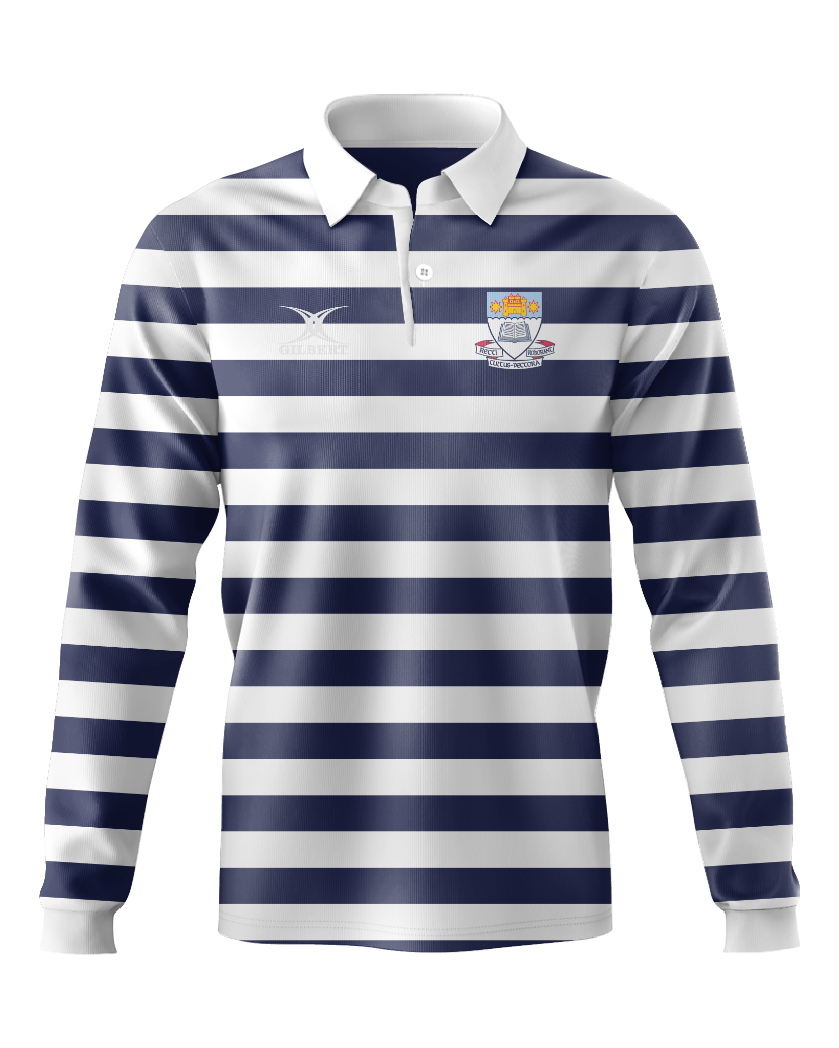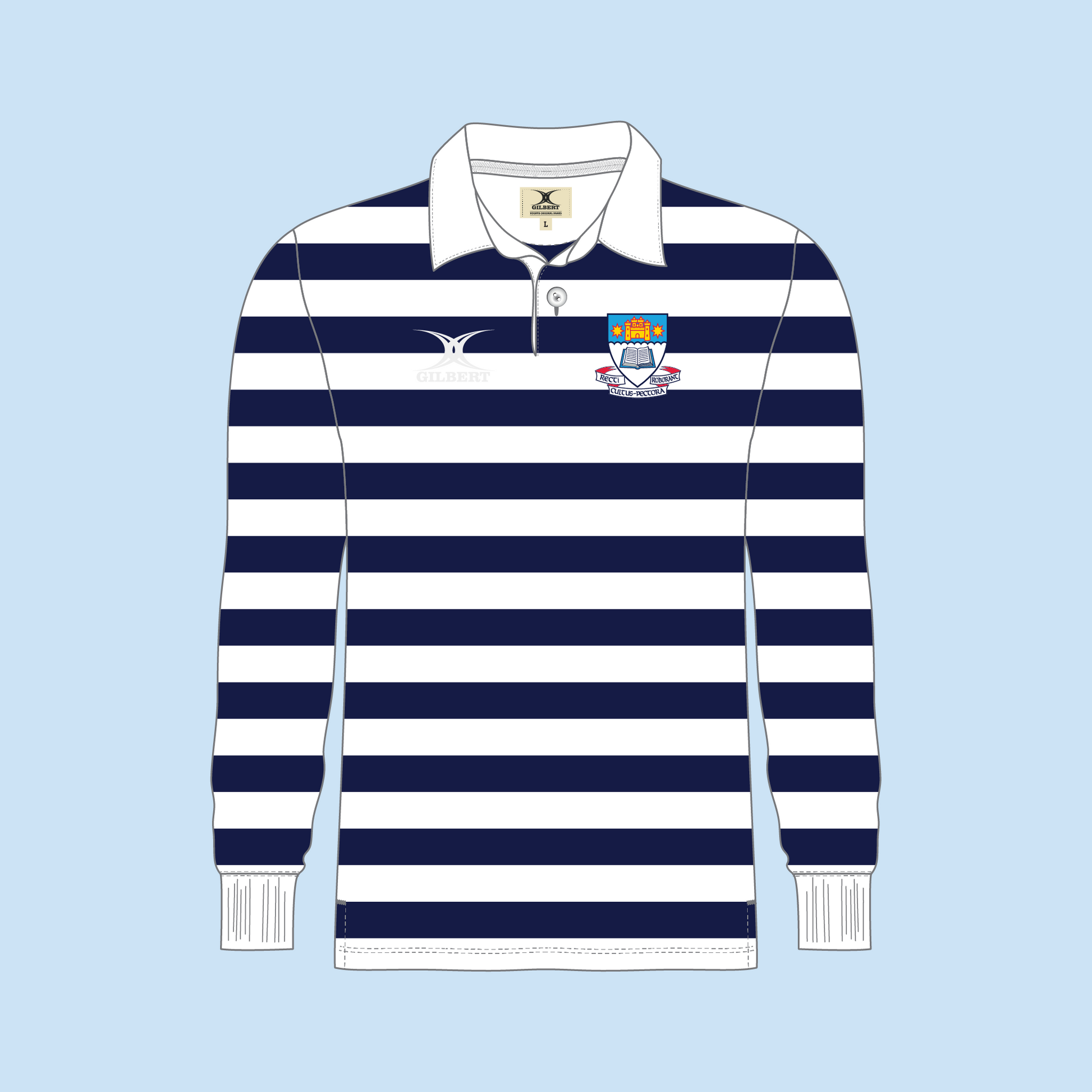 The ultimate supporters' jersey is the perfect blend of style and comfort. Crafted from premium-quality cotton, this classic rugby jersey offers a comfortable fit. It proudly features the OBHS logo on the front, the iconic OBHS navy and white hoops.